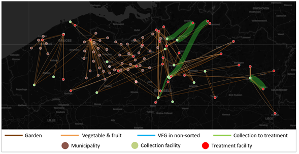 The ATLANTES platform visualises waste movement geographically, providing links with specific activities, actors, and locations. The ATLANTES platform allows the understanding of waste flows in the Province of Antwerp territories and aims to reduce waste production by conceiving waste as a resource.